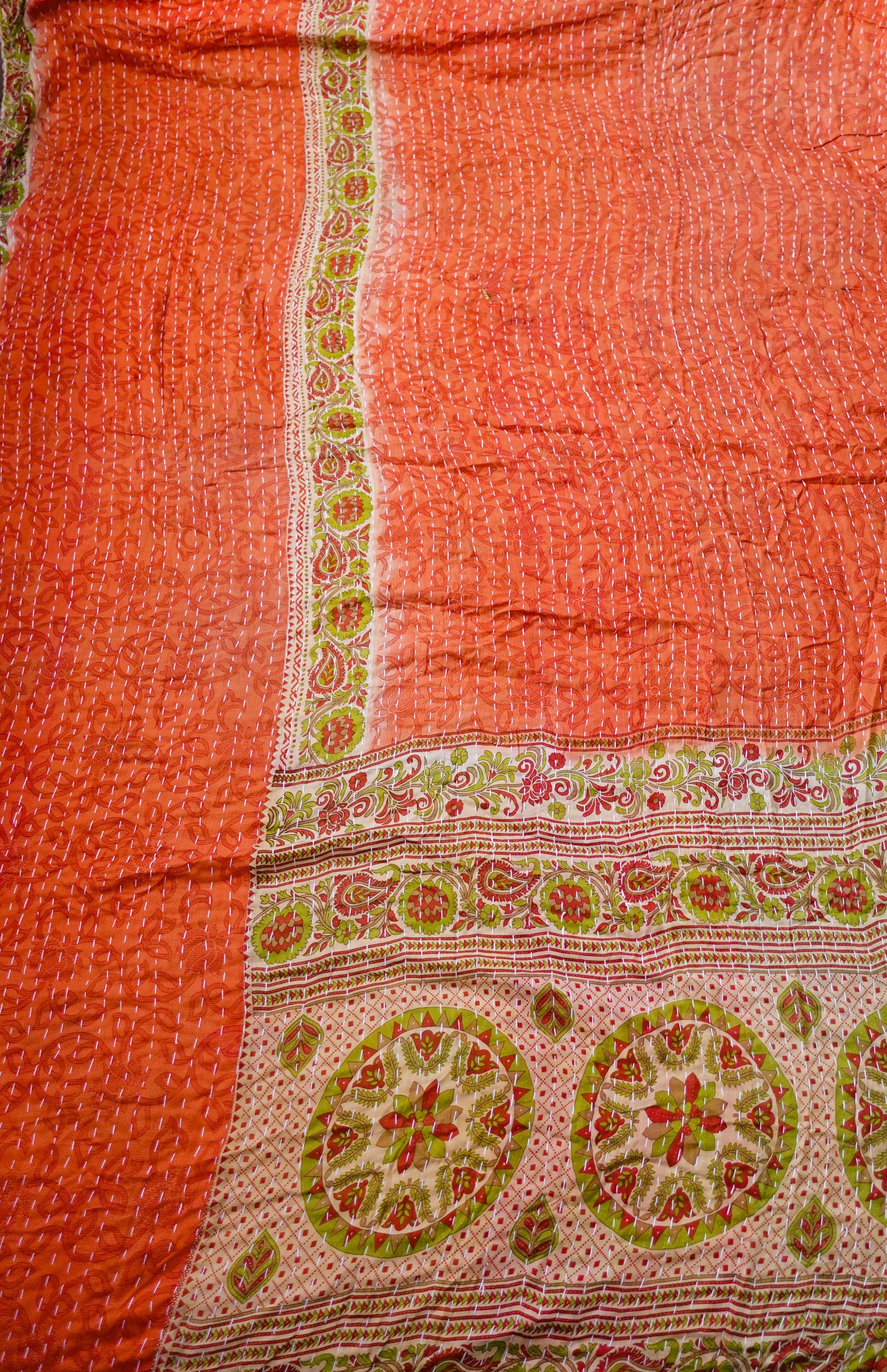 Beautiful, colourful Kantha throw made from recycled vintage saris sewn together with an all over running stitch.