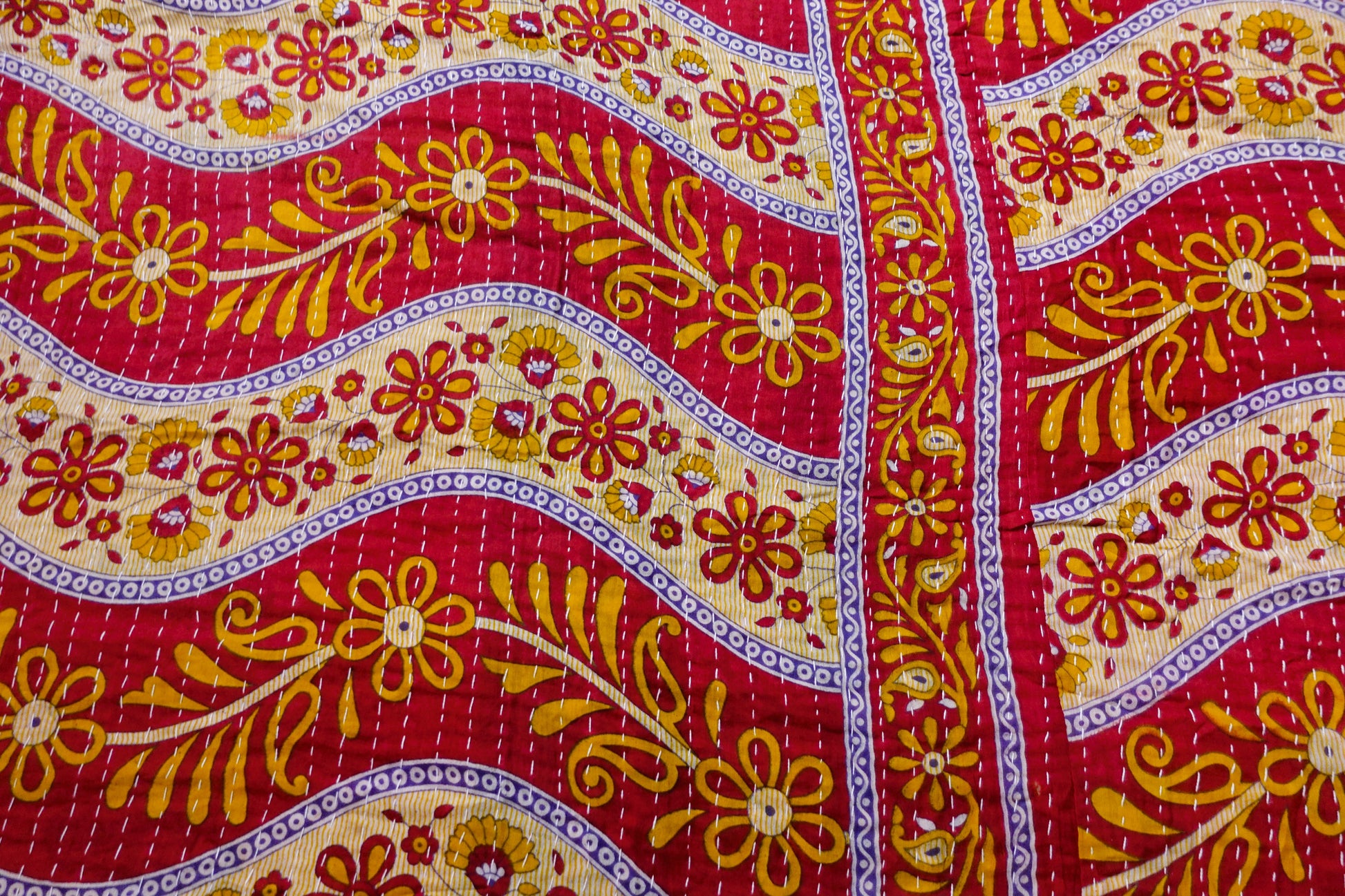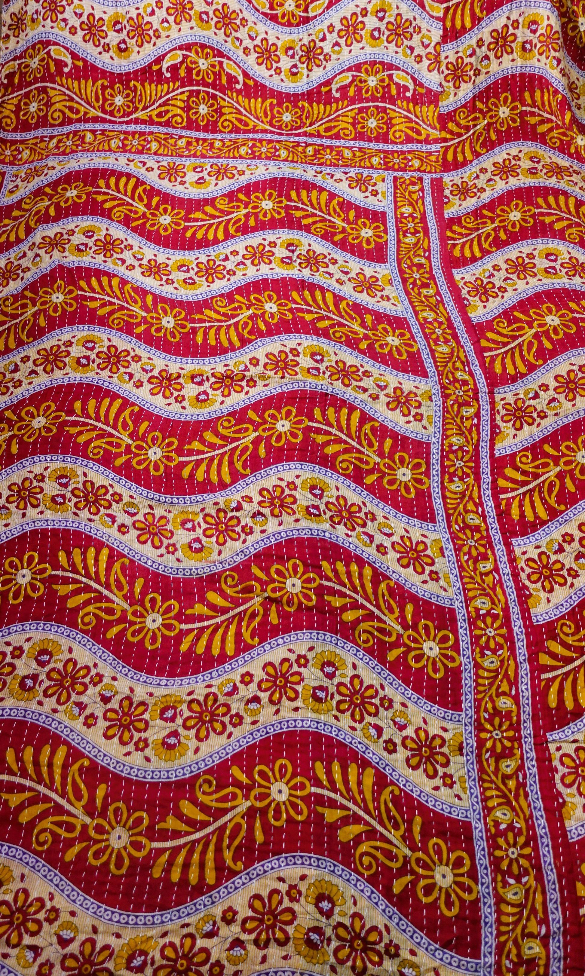 Beautiful, colourful Kantha throw made from recycled vintage saris sewn together with an all over running stitch.