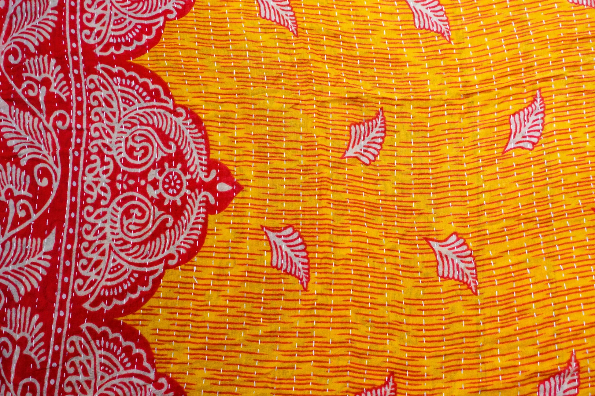 Beautiful, colourful Kantha throw made from recycled vintage saris sewn together with an all over running stitch.