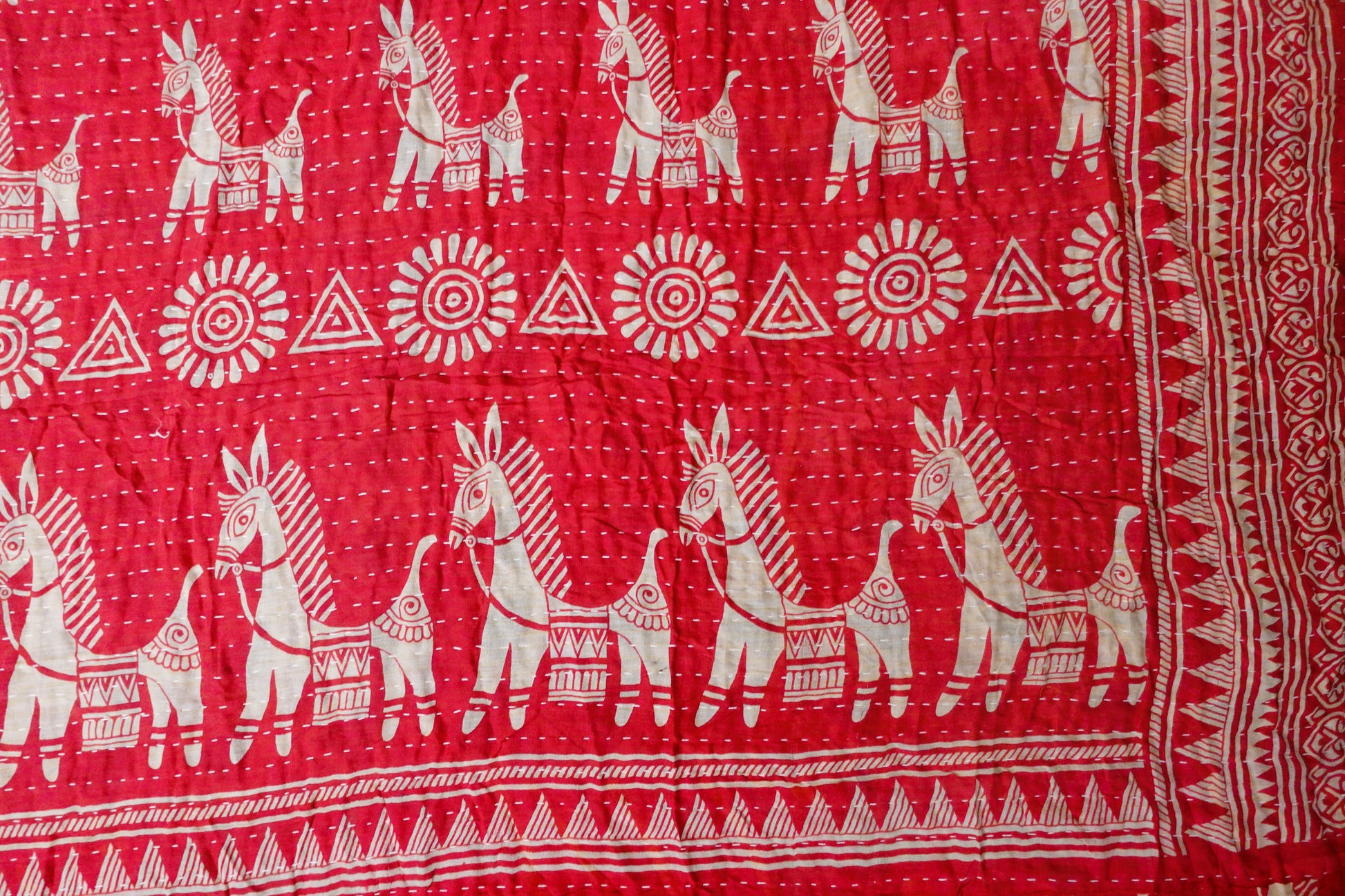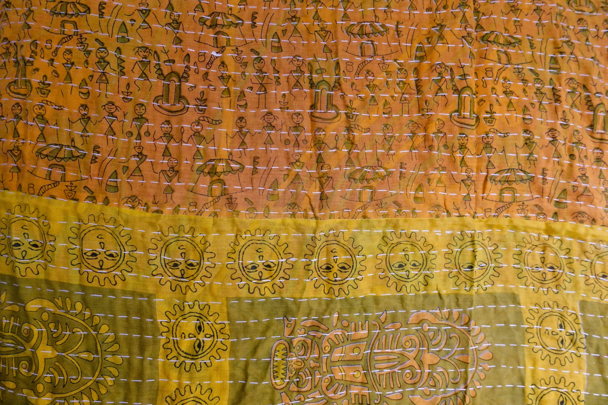 Beautiful, colourful Kantha throw made from recycled vintage saris sewn together with an all over running stitch.