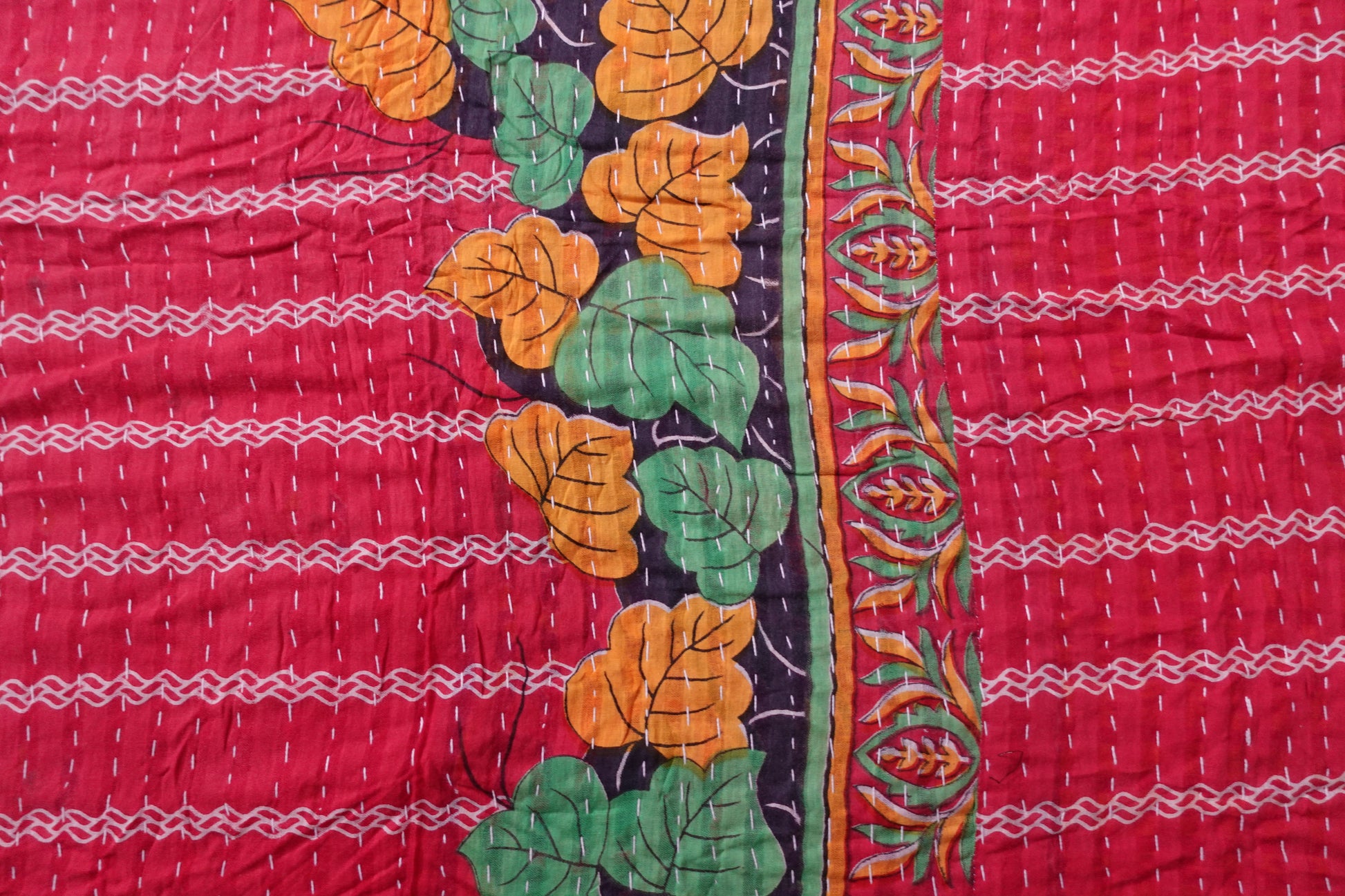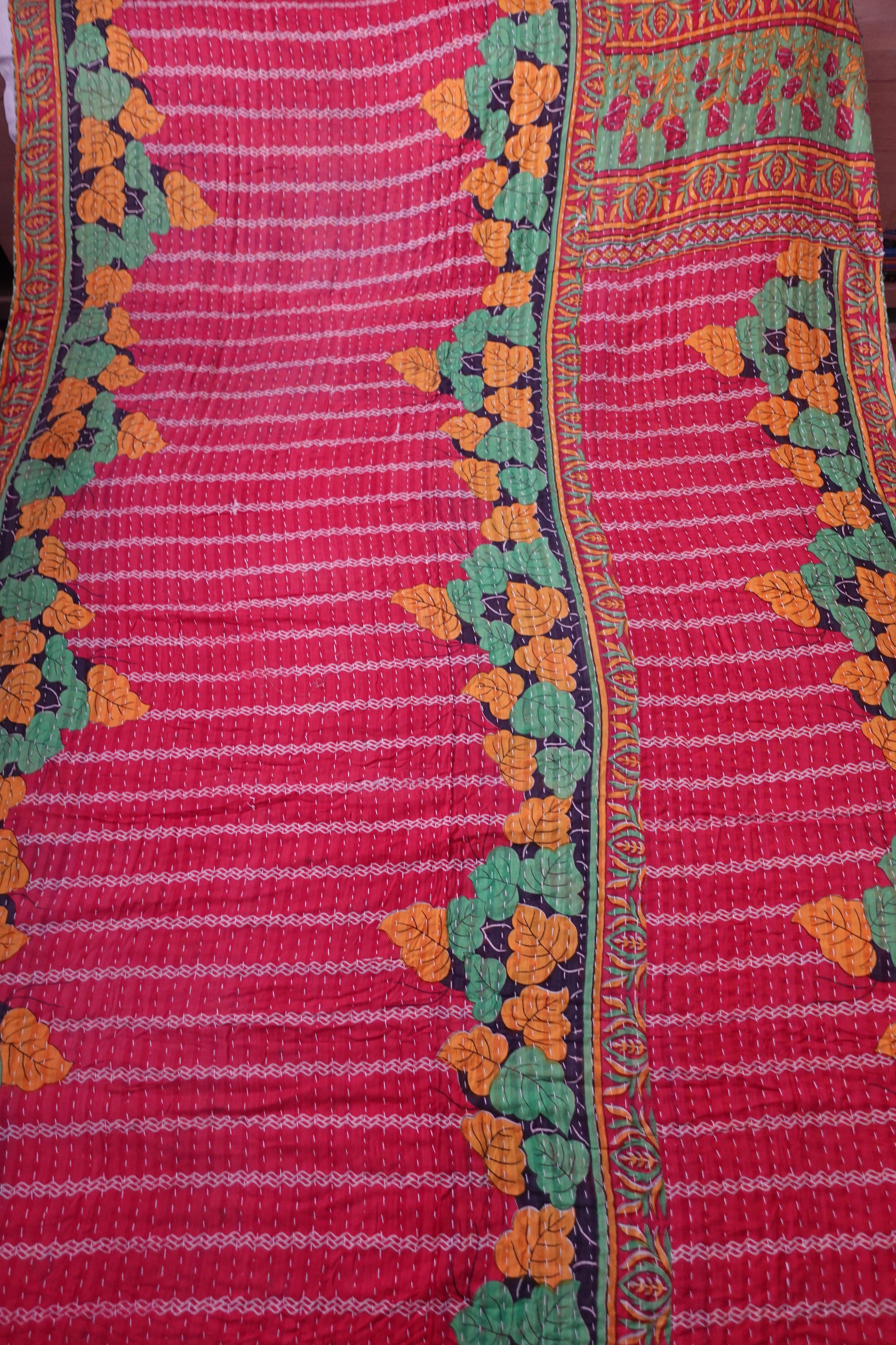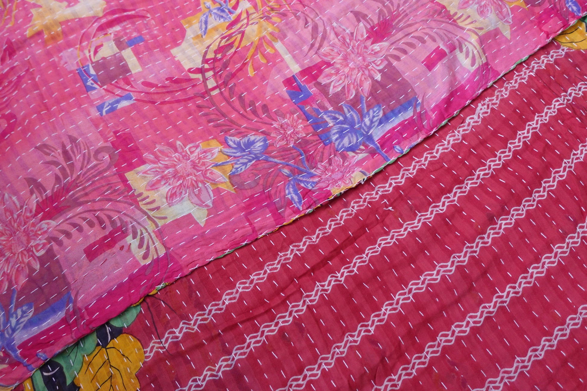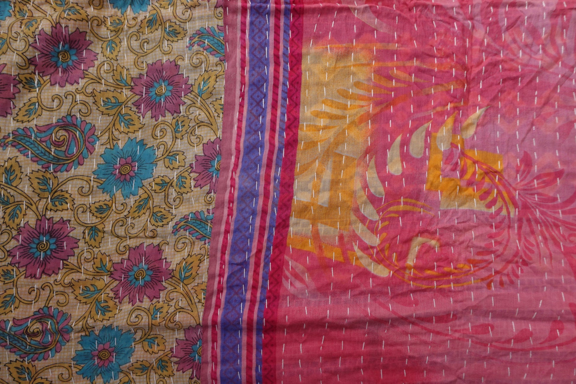 Beautiful, colourful Kantha throw made from recycled vintage saris sewn together with an all over running stitch.
