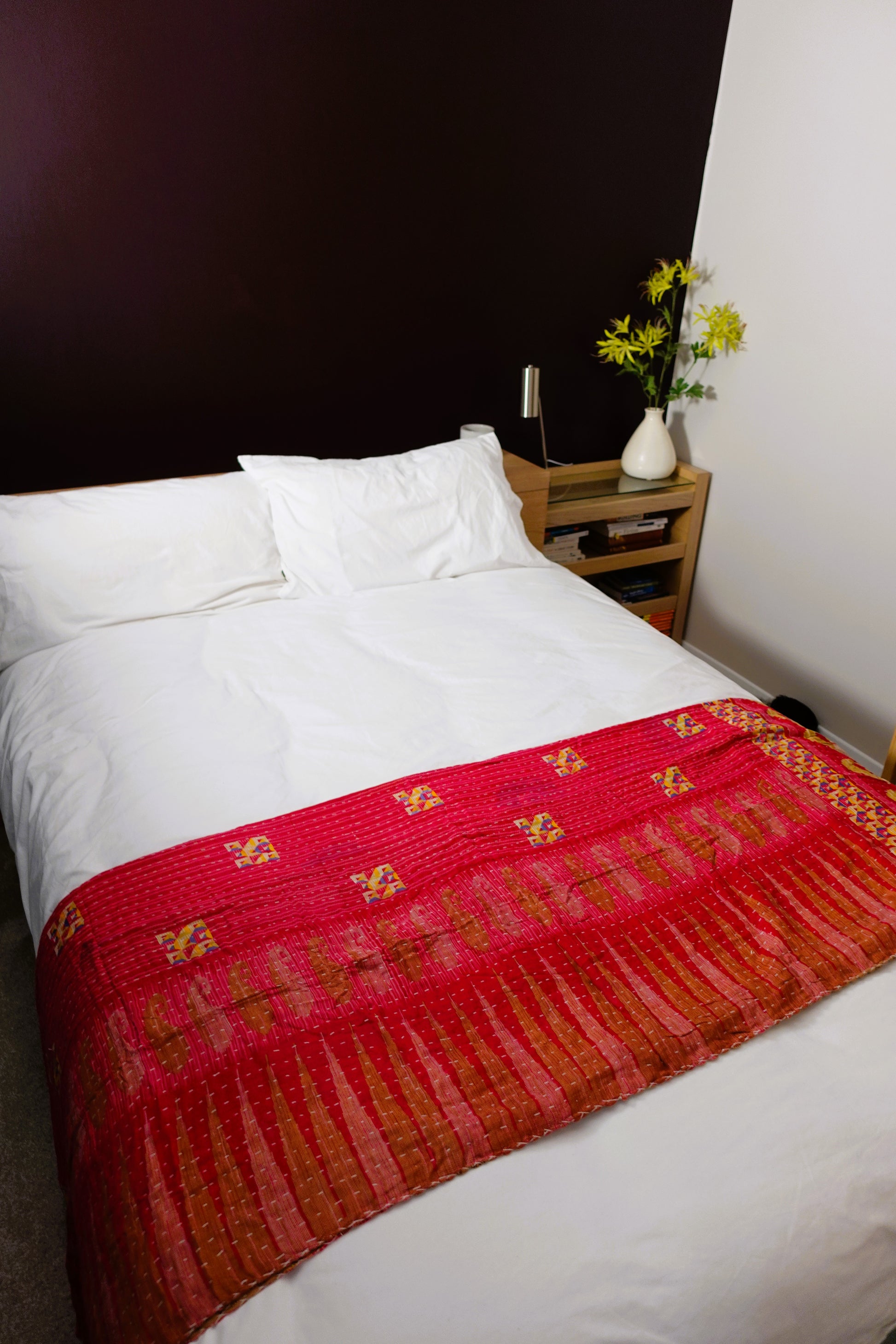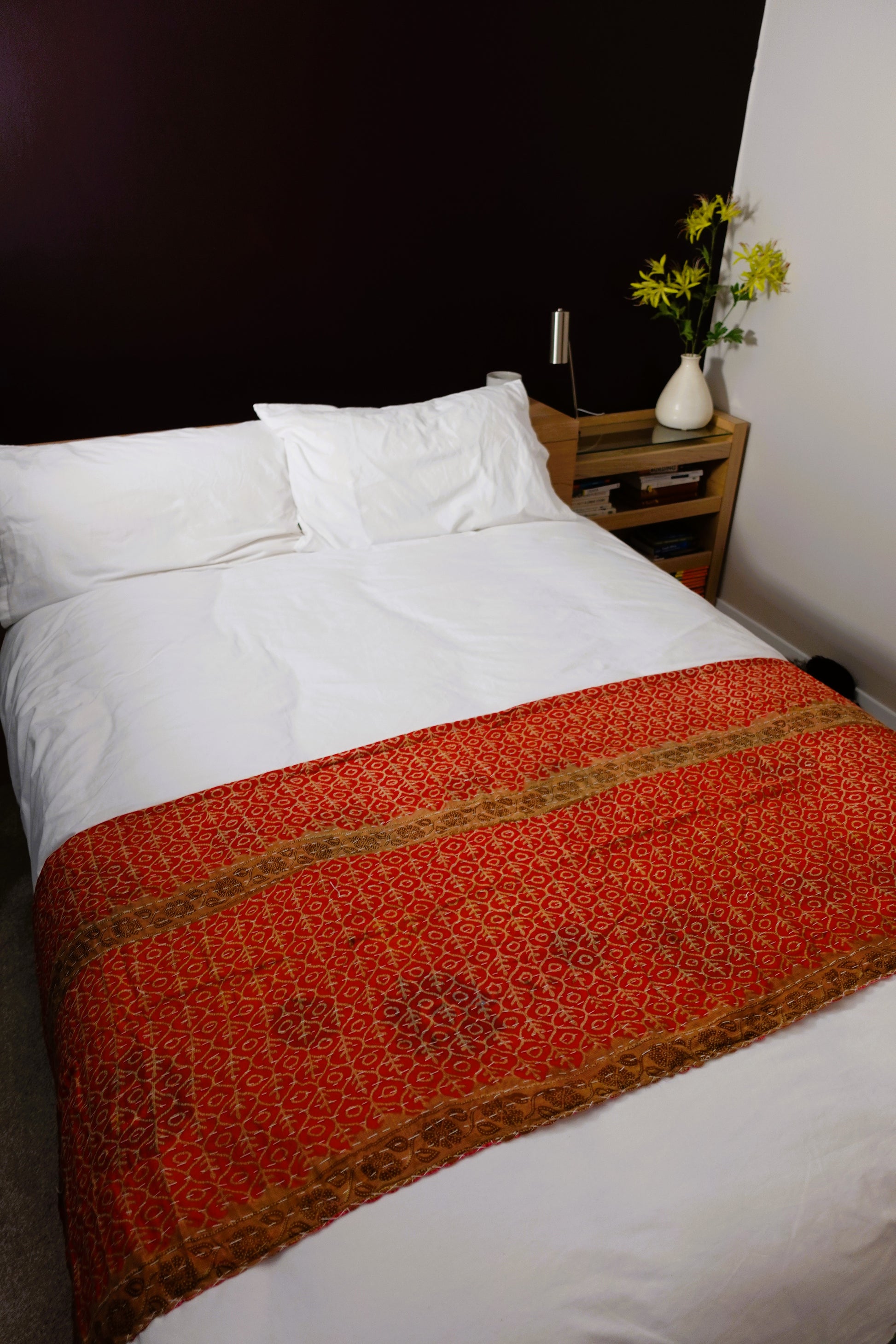 Layers of soft worn sari makes an attractive unique and cosy throw; great for any bed, sofa, campervan, etc.