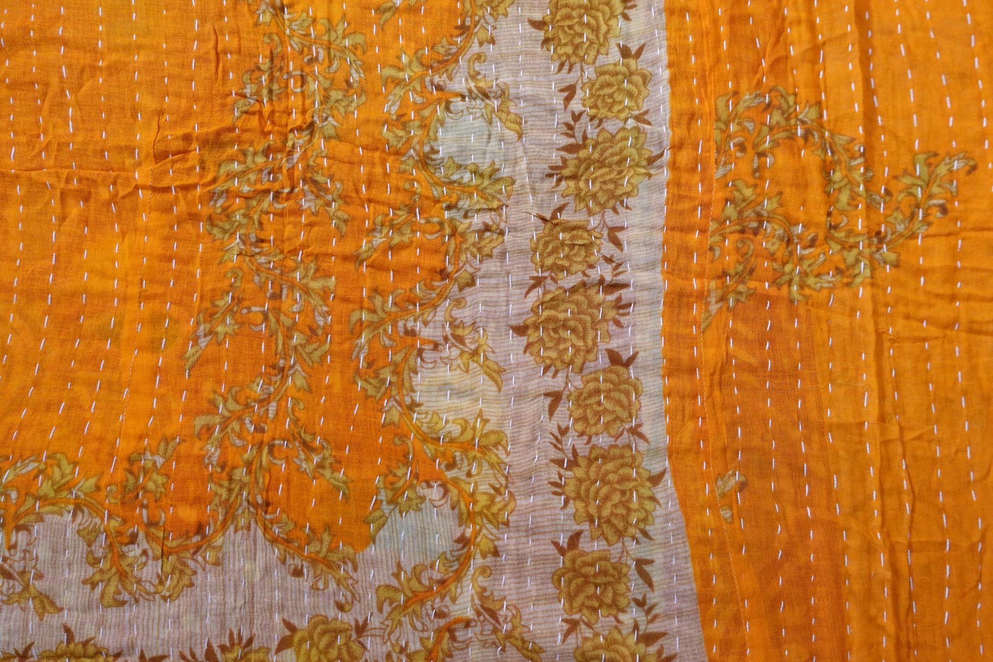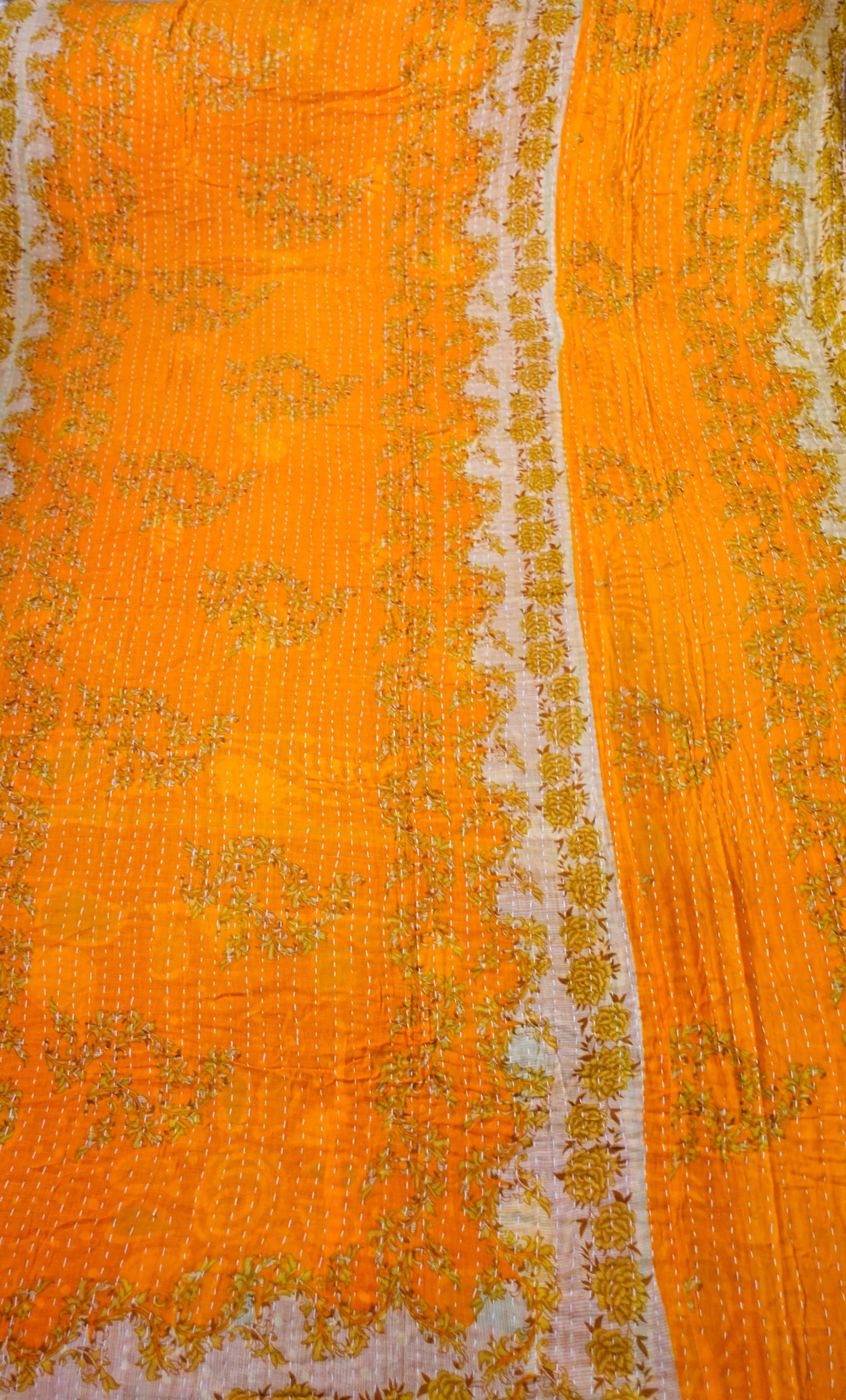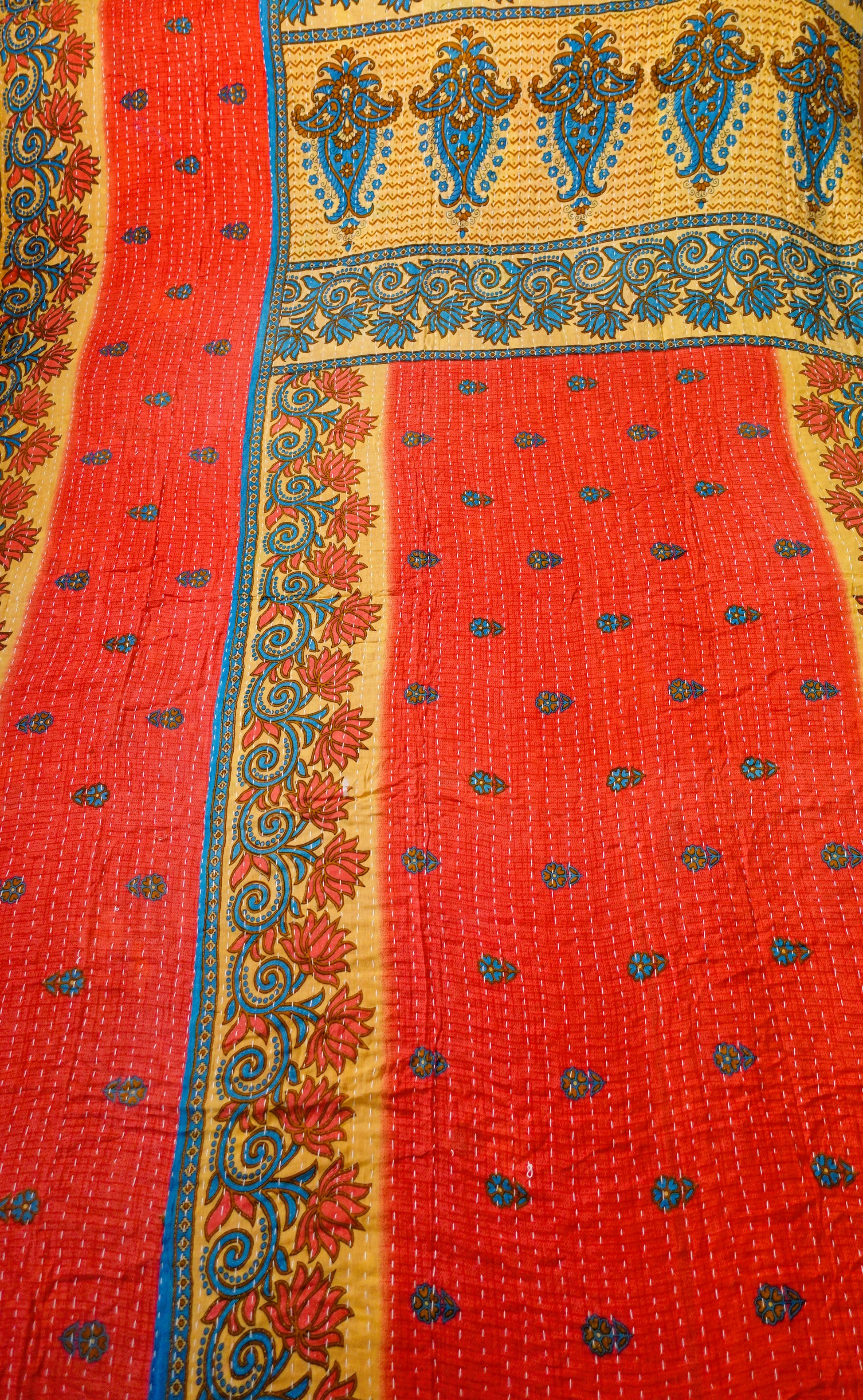 Beautiful, colourful Kantha throw made from recycled vintage saris sewn together with an all over running stitch.