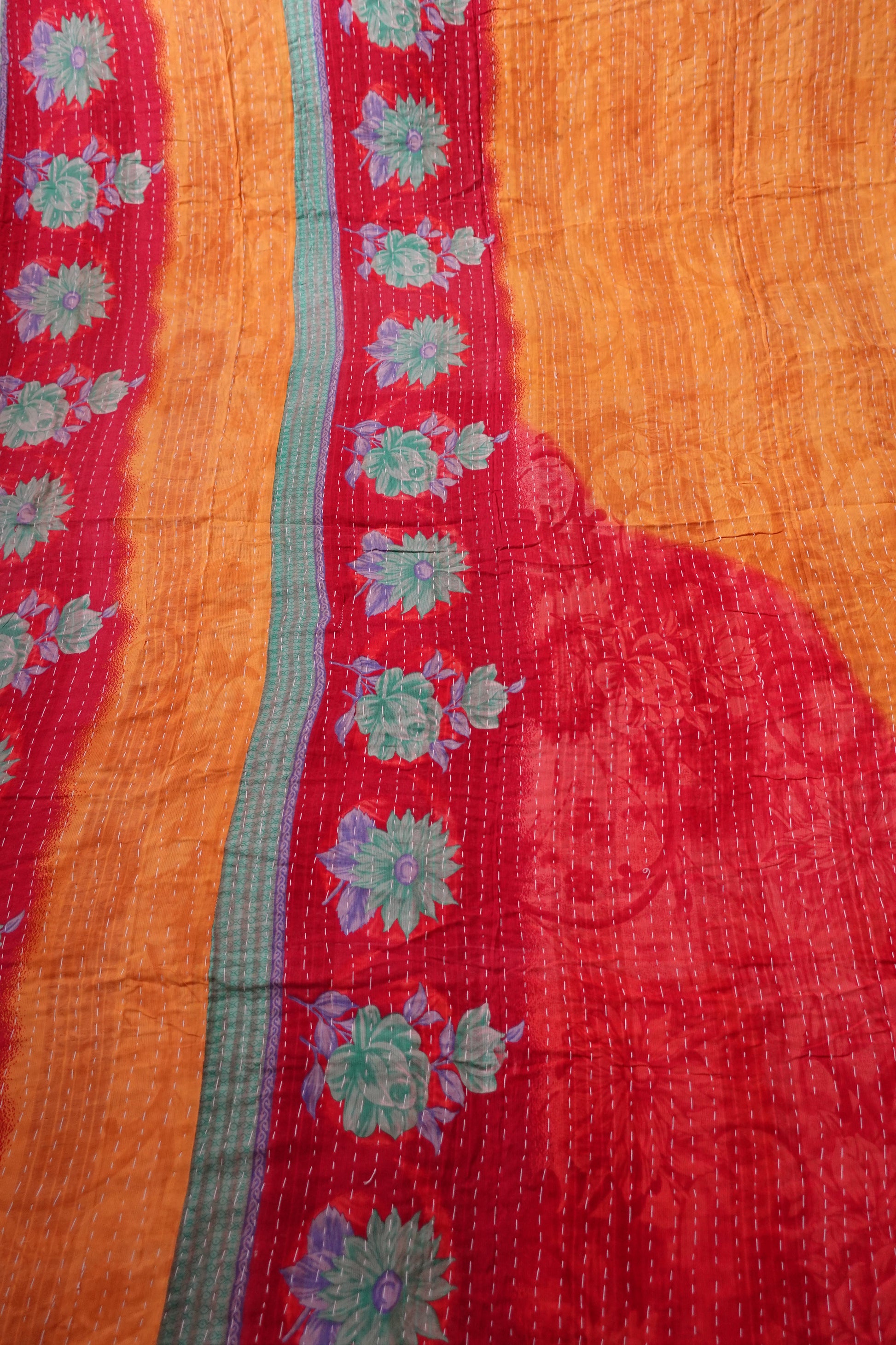 Beautiful, colourful Kantha throw made from recycled vintage saris sewn together with an all over running stitch.