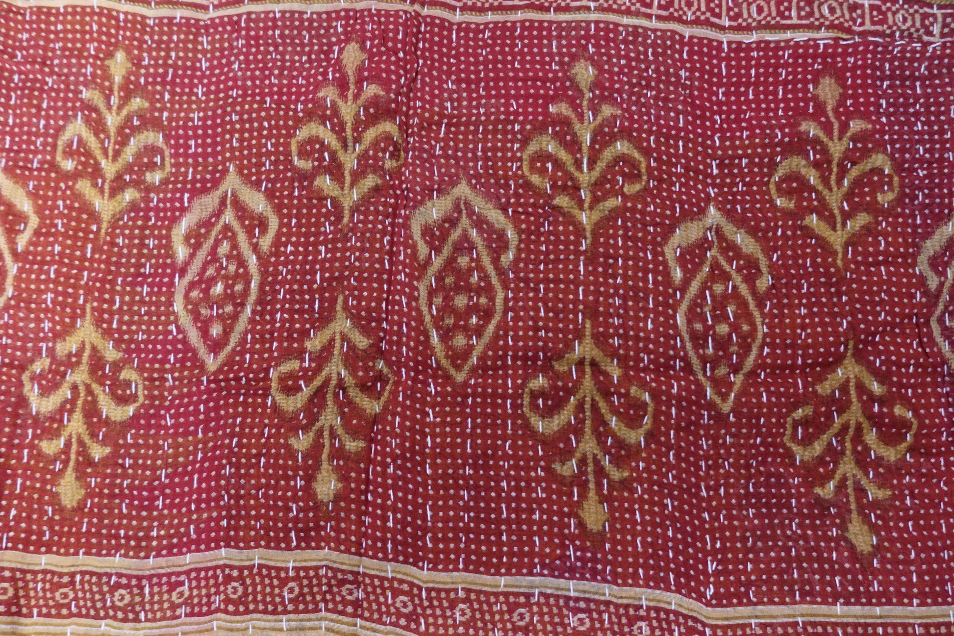 Beautiful, colourful Kantha throw made from recycled vintage saris sewn together with an all over running stitch.