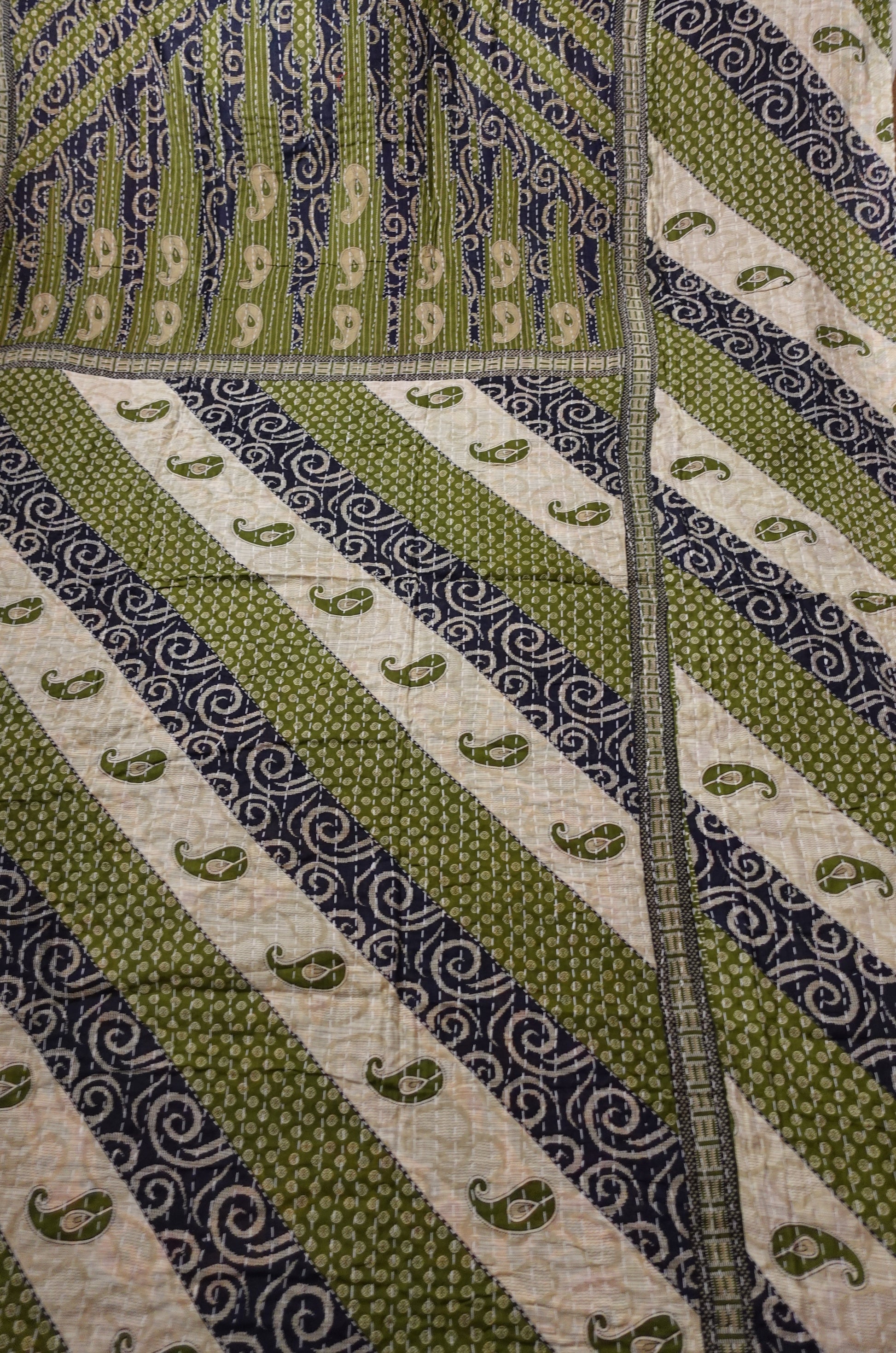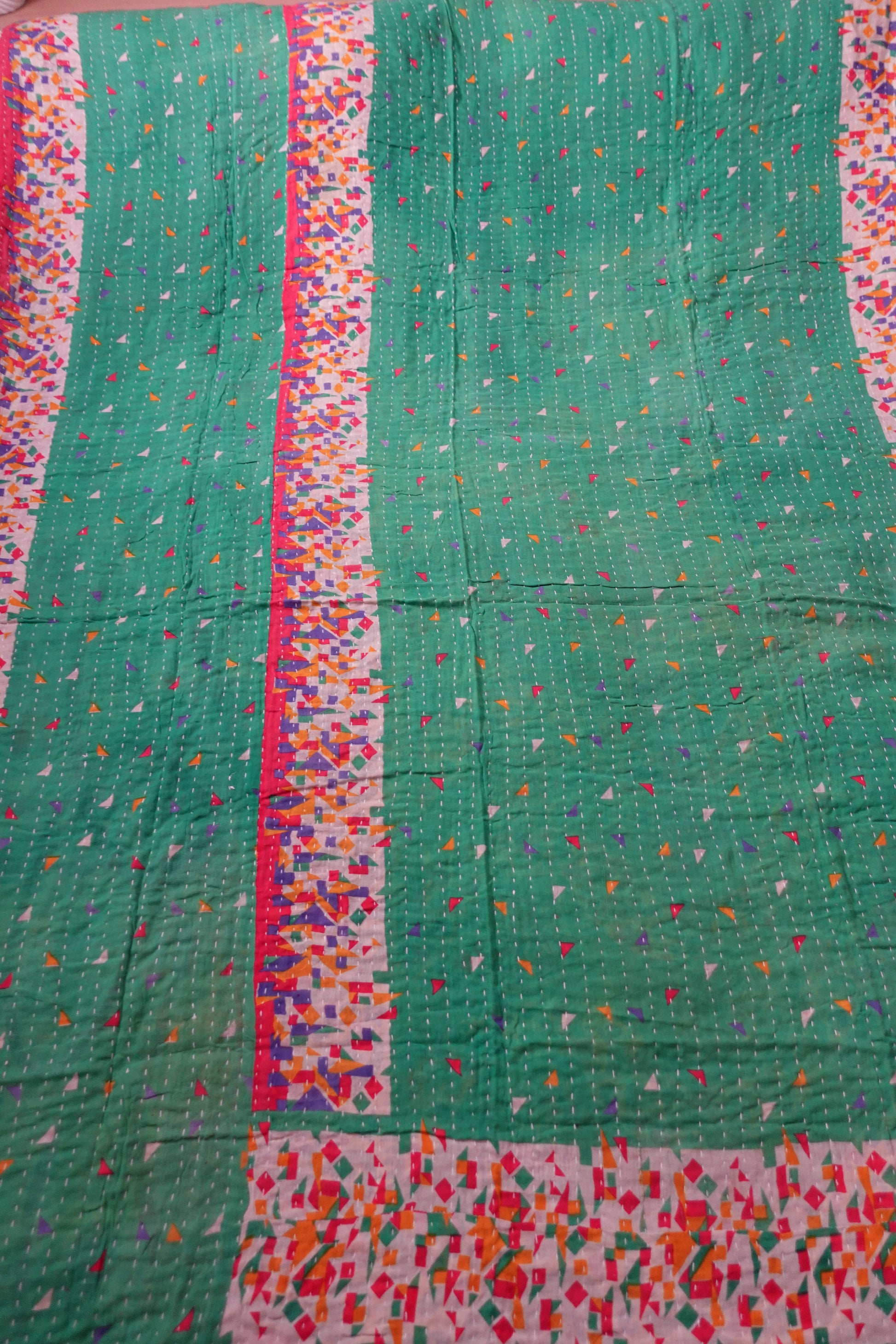 Beautiful, colourful Kantha throw made from recycled vintage saris sewn together with an all over running stitch.