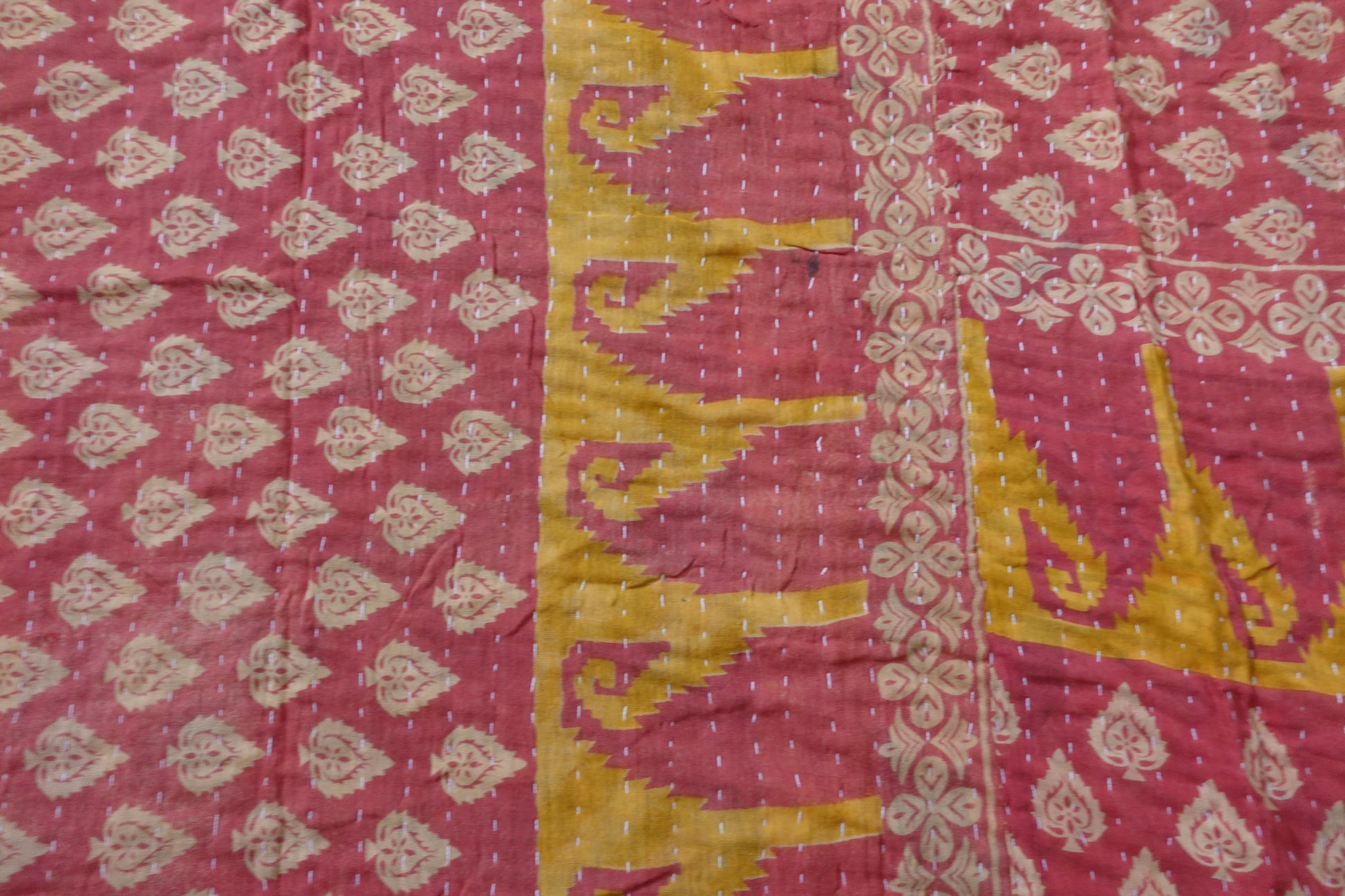 Beautiful, colourful Kantha throw made from recycled vintage saris sewn together with an all over running stitch.